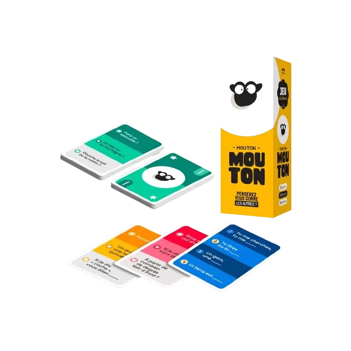 Mouton Mouton est un jeu de connexion mentale créé par Antoine G. et Rémy W., les auteurs du célèbre Speed Bac (Grand Prix du Jouet 2024). Édité par ATM Gaming et distribué par Pixie Games, ce titre a immédiatement séduit le jury du Grand Prix du Jouet 2025 en remportant la catégorie Jeu d'Équipe. Le concept repose sur une mécanique universelle et instantanément compréhensible : les joueurs forment des binômes et doivent compléter simultanément des phrases inachevées en donnant exactement les mêmes réponses, sans se consulter. Une carte affiche un début de phrase comme "J'aimerais avoir…", "Tendu comme un…" ou "Un bon…", et chaque joueur réfléchit en silence avant de révéler sa réponse au signal. Si les deux partenaires ont écrit la même chose, la carte est remportée. Sinon, tout est perdu et l'équipe repart de zéro. Cette simplicité apparente cache une mécanique psychologique fascinante qui révèle la complicité (ou les malentendus !) entre les joueurs.