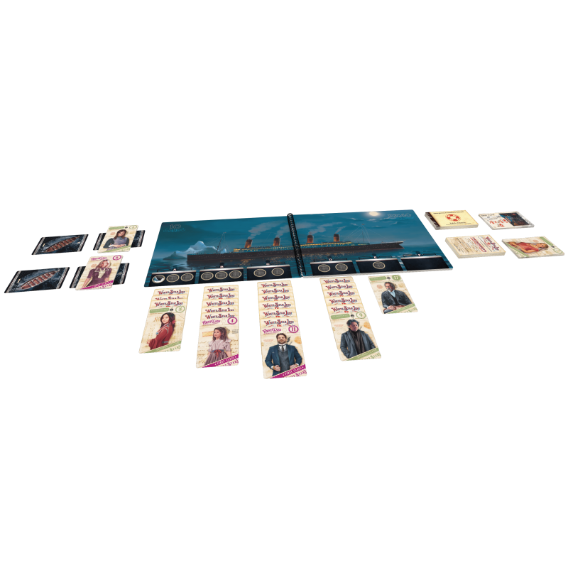 Chaque membre d’équipage dispose d’actions spéciales uniques qui offrent des stratégies variées et renouvellent les parties. Le matériel original, sous forme de livret de jeu simulant le naufrage page après page, renforce l’immersion dans cette course contre la montre.